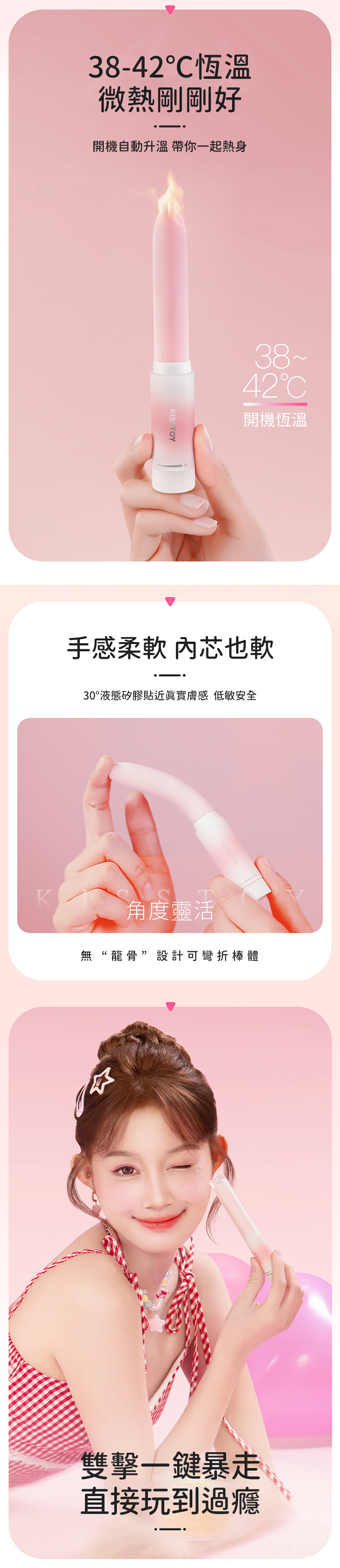 30°柔彎貼膚,液態矽膠Q彈親膚,像戀人般貼心。
