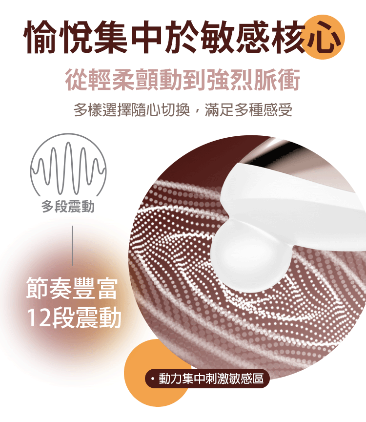 聚點直擊敏感,強勁震動核心,讓快感層層湧動。