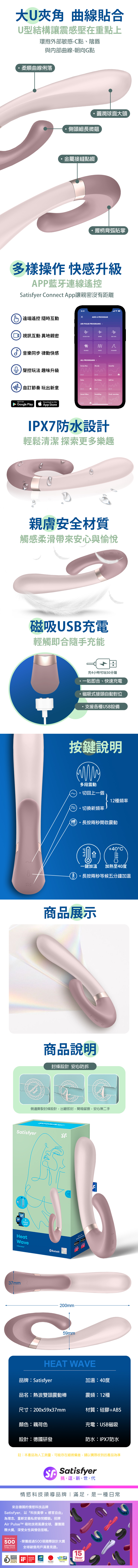 產品名稱:Satisfyer|Heat Wave 熱浪雙頭震動按摩棒 粉