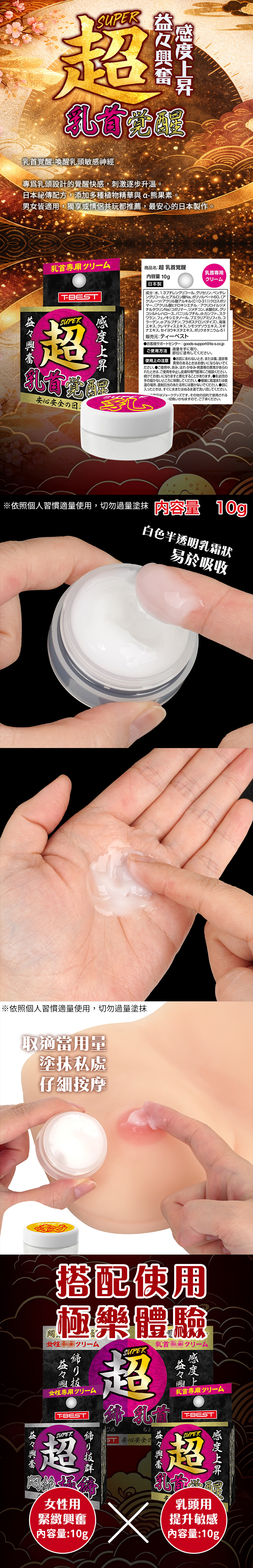 商品名稱:T-BEST|超乳首覺醒按摩乳霜 10g